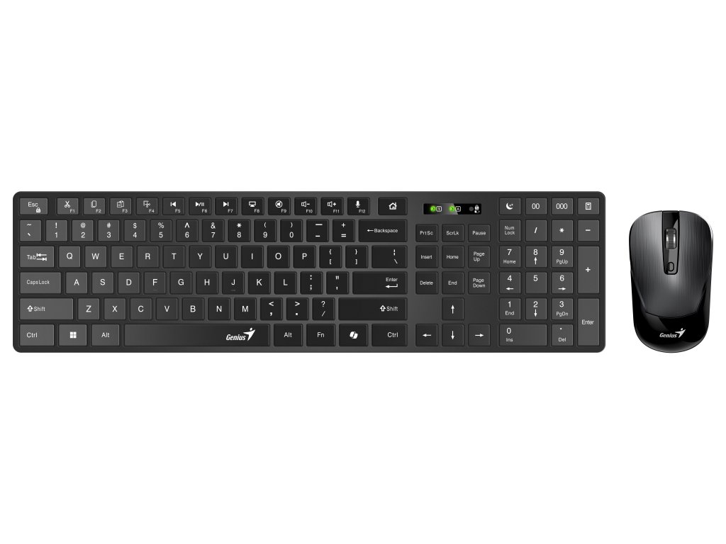 Genius SlimStar 8250 představují set klávesnice a myši na váš pracovní stůl. Tento model je připraven na činnost s aplikacemi, tabulkami, dokumenty i umělou inteligencí. Klávesnice Genius je vybavena samostatnou klávesou Copilot pro aktivaci AI. Jedním stiskem spustíte svého chytrého asistenta, který vám poradí s úkoly, vypracuje text e-mailu a dalších dokumentů, opatří informace na rešerše nebo odpolední poradu apod. Tenký design s chiclet klávesami je stylový a podporuje komfortní i tiché psaní. Fanoušci tabulek a čísel obecně ocení přítomnost numerického bloku.