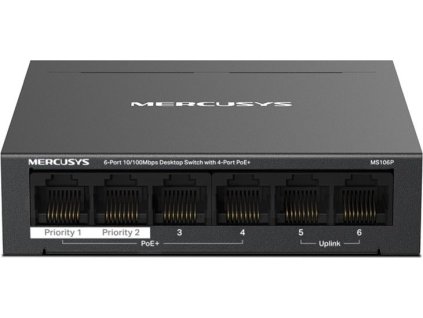 Stolní switch nabízí celkem 6 portů, z toho 4 PoE+ porty 10/100 Mbps a 2 standardní RJ45 porty, což umožňuje snadné připojení počítačů, IP kamer nebo přístupových bodů. Každý...