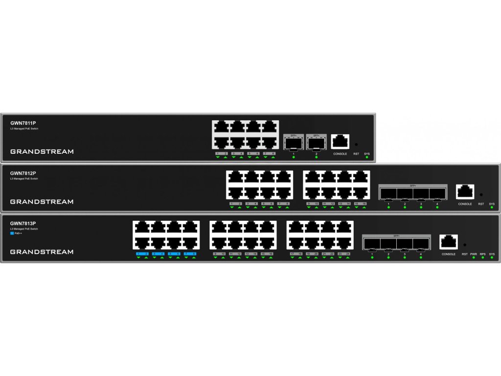 Modely PoE poskytují inteligentní dynamický PoE výstup pro napájení IP telefonů, IP kamer, Wi-Fi přístupových bodů a dalších koncových bodů PoE. Řadu GWN7810 lze spravovat mnoha způsoby, včetně lokálního webového uživatelského rozhraní přepínače řady GWN7810 a CLI, rozhraní příkazového řádku. Řadu také podporují routery řady GWN, GDMS Networking a GWN Manager, cloudovou a on-premise platformu pro správu sítě od společnosti Grandstream. Řada GWN7810 je nejvýhodnější spravovaná síťová síťová přepínače podnikové úrovně pro střední až velké podniky.