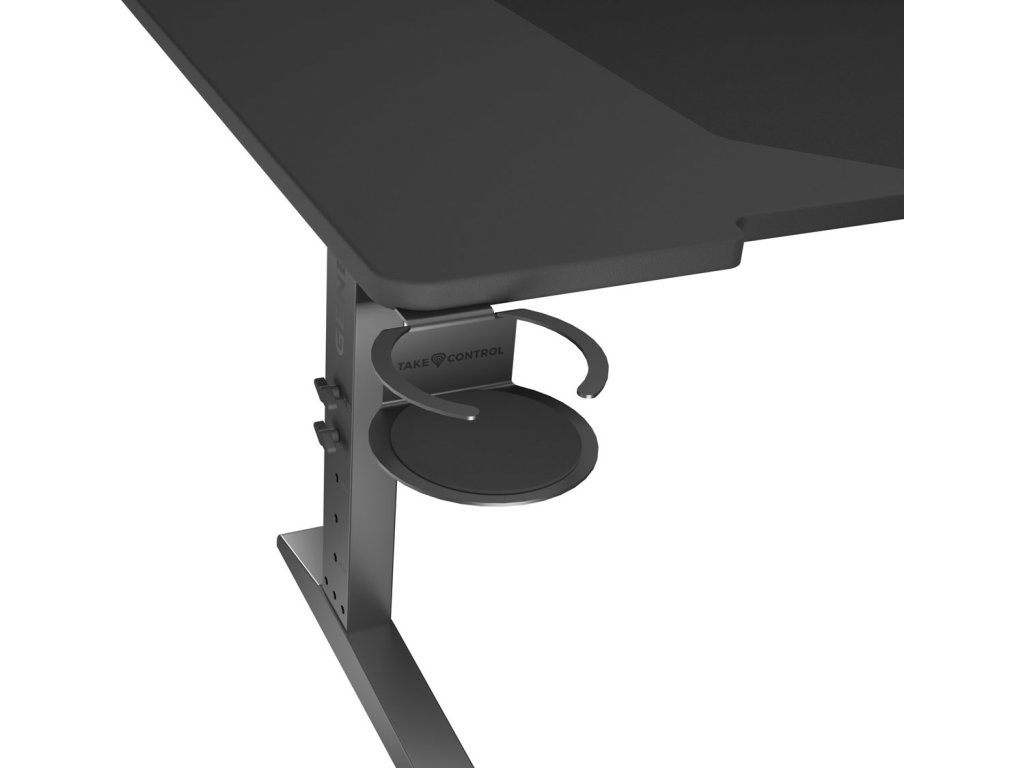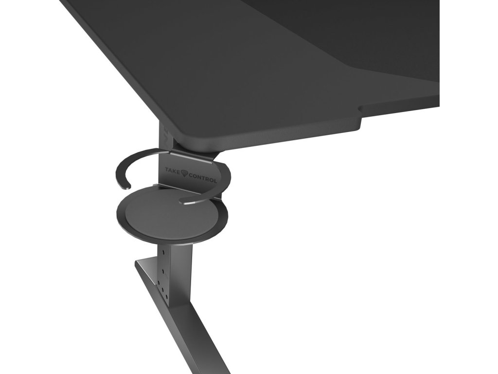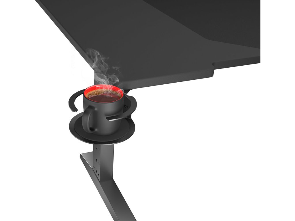 - Je vybaven skládacími držáky na šálky a sluchátka, které lze bez demontáže skrýt pod stůl.