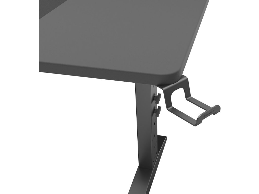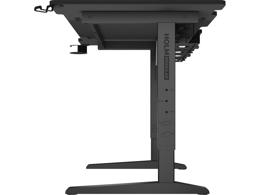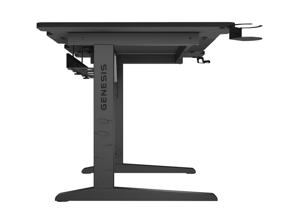 Nemusíte se obávat ani jeho výšky. Již ve fázi montáže si můžete vybrat z 5 úrovní, čímž určíte polohu stolové desky v rozmezí 70 až 90 cm. Můžete si ji tak snadno přizpůsobit své výšce, díky čemuž je stůl GENESIS Holm Modular plně ergonomický. Nastavitelná je také speciální police na kabely. Můžete ji prodloužit v rozmezí 50 až 95 cm, a přizpůsobit ji tak rozměrům celé stolové desky. Díky její hloubce se do ní snadno vejdou i velké přepěťové lišty.
