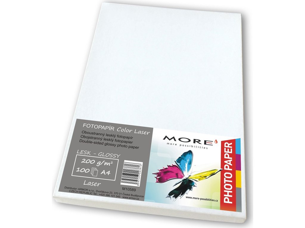 Hlazený Color Laser papír, A4, 200g/m2, oboustranný-glossy, Oboustranný lesklý papír pro barevné laserové tiskárny MORE Hlazený Color Laser papír, 200g/m2,100 listů str.,Color Laser
