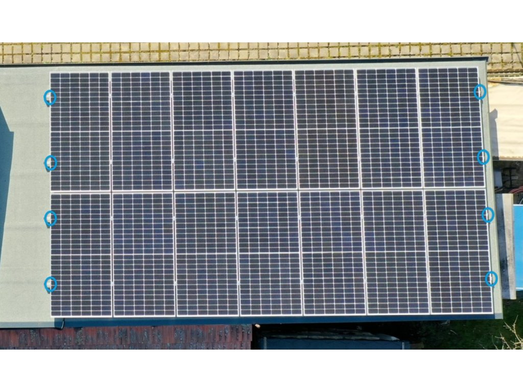 Koncové uchycení má za úkol připevnit poslední solární panel v řadě k hliníkovým profilům s maximální výškou panelu 30 mm. Obvykle se používají dva úchytové body na levé či pravé straně koncového panelu. Koncové uchycení je vyrobeno z hliníku, má rozměry 50 x 38 x 27 mm (šířka, výška, hloubka), matně stříbrnou barvu, otvor na spodní straně má průměr 9 mm.