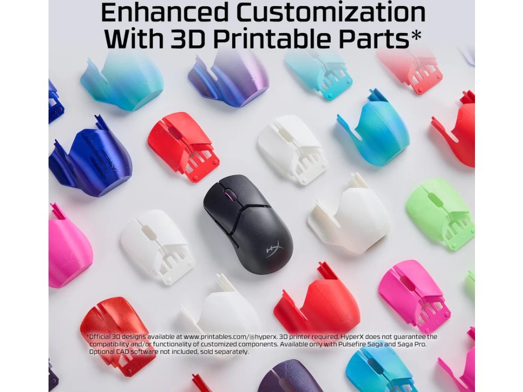 Pozdravte nejpřizpůsobitelnější herní myš HyperX: Pulsefire Saga Pro. Tato myš využívá ergonomicky navržené vyměnitelné součásti pro přizpůsobení různým stylům úchopu s až 16 pohodlnými kombinacemi. Jednoduše vyměňte magneticky namontované součásti a najděte své dokonalé přizpůsobení zcela bez nářadí. Ať už zvolíte jakoukoli konfiguraci, tato myš váží pouhých 72 gramů, takže nikdy nebudete muset obětovat obratnost kvůli pohodlí. Dlouhé herní seance? Žádný problém! Upgrady tím nekončí. Pulsefire Saga Pro je také vybaven optickými spínači HyperX, které vyvažují laserově přesné ovládání pomocí hmatového kliknutí. Na rozdíl od tradičních spínačů, které vyžadují mechanický kontakt, optické spínače využívají mechanismus spouštěný světlem, který převádí kliknutí na okamžité akce. Žádné odskoky, žádné zpoždění. Pulsefire Saga Pro také nabízí duální bezdrátové připojení, využívající vysokorychlostní 2,4 GHz bezdrátový dongle nebo Bluetooth s kompatibilními zařízeními. Nebo se zbavte hardwarového klíče pomocí funkce Instant Pair a připojte se k herním notebookům OMEN bez jakýchkoli dalších komponent. Připojte se k softwaru HyperX NGENUITY a nastavte sledování pohybu až do 26k DPI, přemapujte tlačítka, upravte rychlost dotazování, nastavte vlastní RGB efekty a sledujte výdrž baterie.