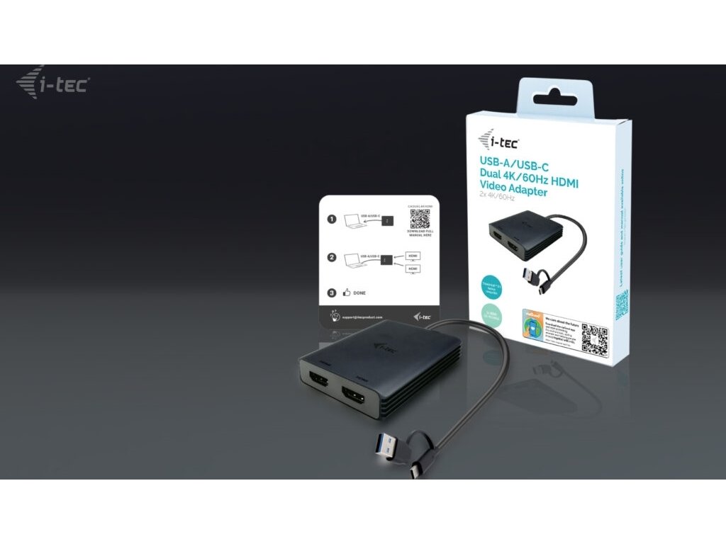 i-tec USB-A/USB-C Dual 4K HDMI video adaptér