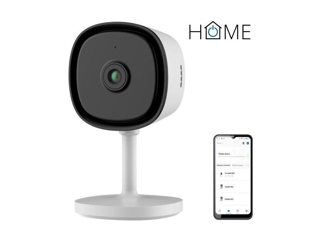 Vnitřní IP kamera s online sledováním pomocí mobilního telefonu, tabletu, apod. Ukládání záznamů a fotografií na microSD kartu nebo Cloud. Rozlišení FullHD 1080p (1920 x 1080) pro video ve vysoké kvalitě, denní i noční provoz, snímač 1/2,9" CMOS, komprese videa H.264, IR přisvětlení až 10 m, ohnisková vzdálenost 3,6 mm, Wi-Fi b/g/n, mikrofon a reproduktor, slot pro microSD kartu s velikostí až 128 GB, protokol OnViF. Stojánek kamery je možné ohýbat dle potřeby a pomocí oboustranné pásky, která je v balení, kameru připevnit kdekoliv.