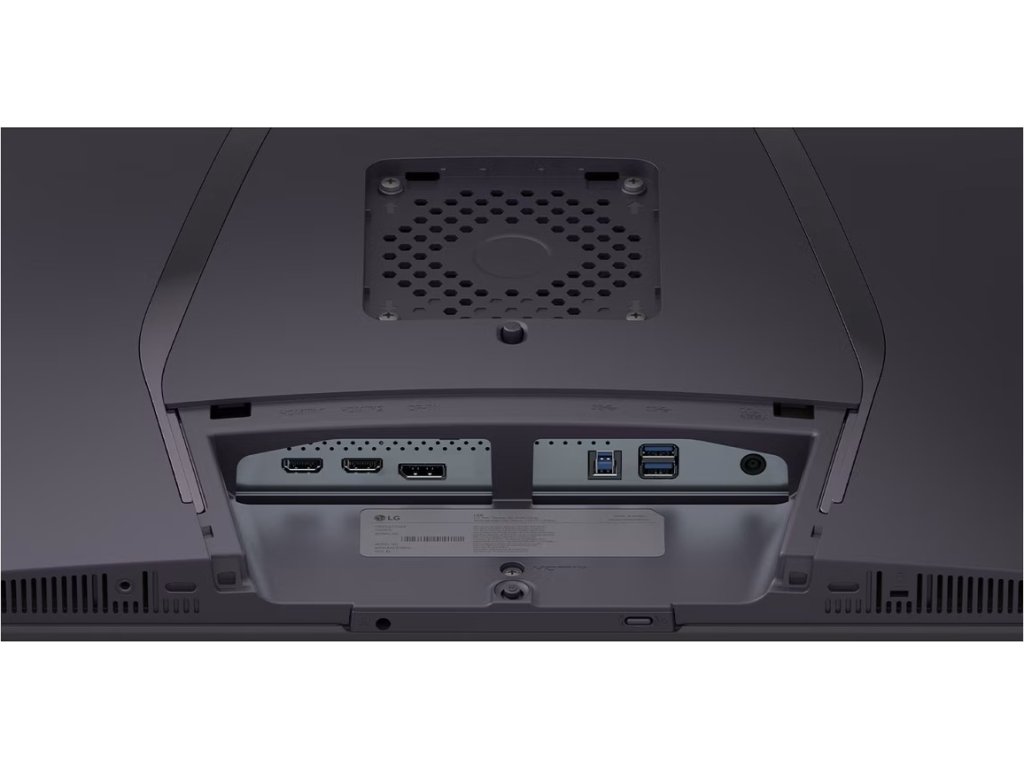 Kompletní konektivita zahrnuje HDMI 2.1, DisplayPort 1.4 s DSC, dva USB 3.0 porty a 3,5mm jack pro sluchátka. Podporuje HW kalibraci, VRR technologie a automatické přepínání vstupů.