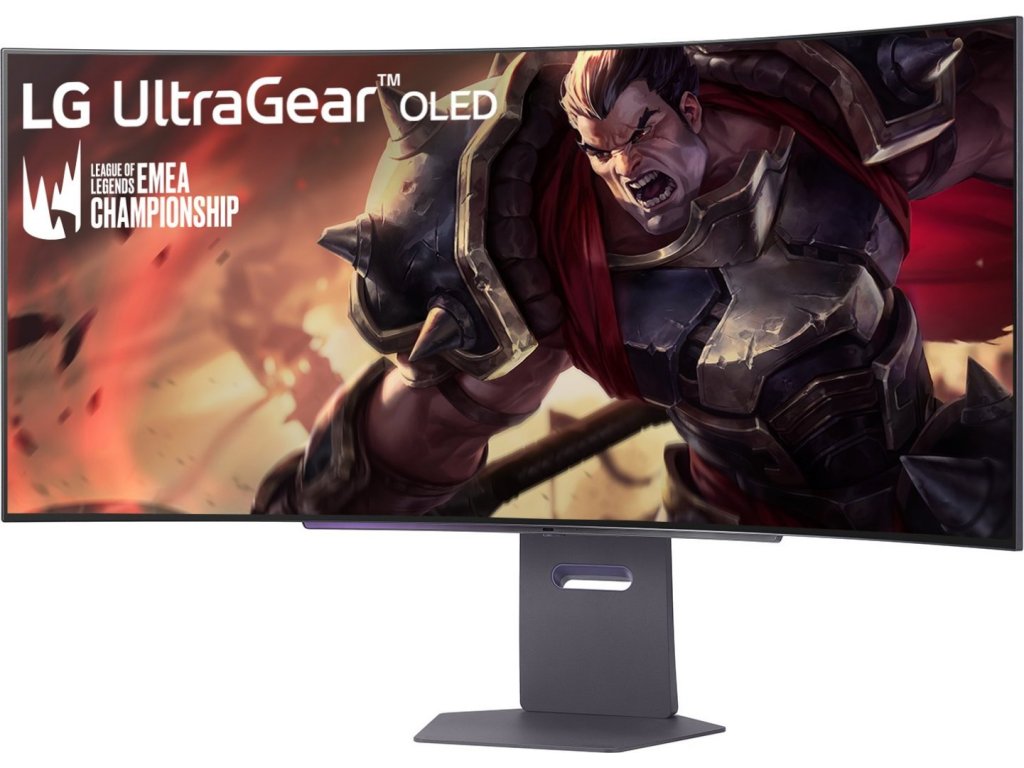 Prohnutý OLED monitor s úhlopříčkou 44,5" nabízí WQHD rozlišení 3440 × 1440 obrazových bodů s poměrem stran 21 : 9. Disponuje dobou odezvy 0,03 ms, jasem 275 cd/m² a variabilní obnovovací frekvencí až 240 Hz. Široké pozorovací úhly 178° horizontálně i vertikálně. Díky podpoře technologií AMD FreeSync Premium a NVIDIA G-SYNC poskytuje monitor plynulý a ostrý obraz. Mezi hlavní přednosti patří certifikace VESA DisplayHDR 400 TRUE BLACK a 98,5% pokrytí barevného gamutu DCI-P3. K dispozici jsou dva porty USB 2.0, ethernetový port RJ-45 a jeden port USB-C, který kromě vysokorychlostního přenosu videa a dat umožňuje napájení připojených zařízení až do 65 W. O ozvučení se stará dvojice reproduktorů s celkovým výkonem 14 W. Monitor je vybaven také bezdrátovým připojením Wi-Fi, Bluetooth a operačním systémem webOS 24, který umožňuje přístup k streamovacím aplikacím a dalším chytrým funkcím. Potěší také automatické nastavení jasu, stylové RGB podsvícení zadní strany Hexagon Lighting či výškově nastavitelný stojan.
