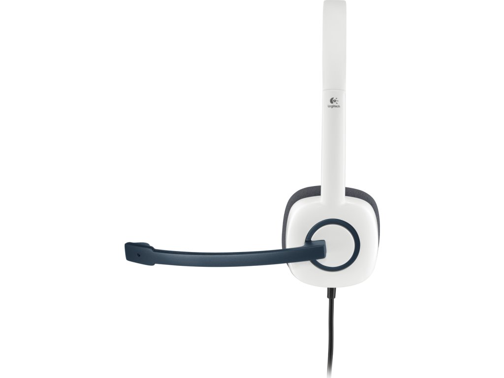 Stereofonní náhlavní souprava Logitech® Stereo Headset H150. Mluvte tak, aby váš hlas zněl čistě. Díky čistému stereofonnímu zvuku je konverzace snadná. Mikrofon s potlačením šumu potlačuje nepříjemný šum na pozadí – takže může váš hlas znít čistě. Mikrofon můžete nosit vlevo nebo vpravo. A když jej nepoužíváte, můžete jej otočit nahoru a směrem ven. Nastavitelný hlavový most a pěnové náušníky umožňují přizpůsobit uchycení. Jednoduché integrované ovládací prvky usnadňují nastavení hlasitosti a ztlumení mikrofonu. Také se snadno instaluje. Náhlavní soupravu stačí připojit ke vstupním a výstupním zdířkám 3,5 mm v počítači a je připravena k používání.