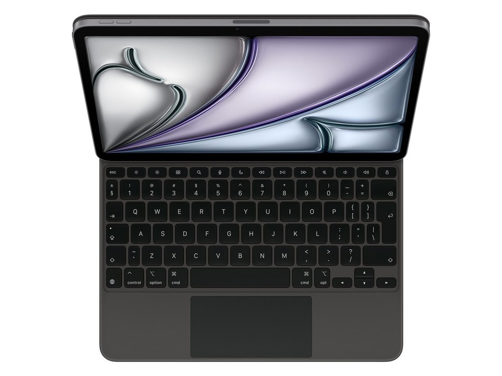 Magic Keyboard je ideální doplněk k iPadu Air. Má elegantní a přenosný design a je na něm radost psát i používat trackpad na přesné ovládání. Nechybí mu řádek 14 funkčních kláves ani USB-C konektor na průchozí nabíjení. Navíc chrání iPad zepředu i zezadu. Plovoucí konzolová konstrukce se dá plynule přizpůsobit do různých pozorovacích úhlů a velký skleněný trackpad rozšiřuje možnosti práce s iPadOS.