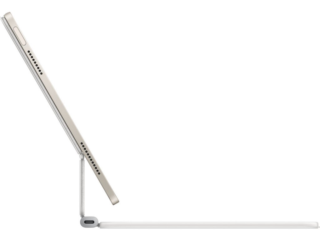 Magic Keyboard je ideální doplněk k iPadu Air. Má elegantní a přenosný design a je na něm radost psát i používat trackpad na přesné ovládání. Nechybí mu řádek 14 funkčních kláves ani USB-C konektor na průchozí nabíjení. Navíc chrání iPad zepředu i zezadu. Plovoucí konzolová konstrukce se dá plynule přizpůsobit do různých pozorovacích úhlů a velký skleněný trackpad rozšiřuje možnosti práce s iPadOS.
