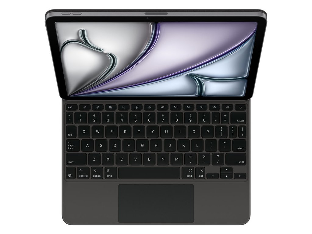 Magic Keyboard je ideální doplněk k iPadu Air. Má elegantní a přenosný design a je na něm radost psát i používat trackpad na přesné ovládání. Nechybí mu řádek 14 funkčních kláves ani USB-C konektor na průchozí nabíjení. Navíc chrání iPad zepředu i zezadu. Plovoucí konzolová konstrukce se dá plynule přizpůsobit do různých pozorovacích úhlů a velký skleněný trackpad rozšiřuje možnosti práce s iPadOS.