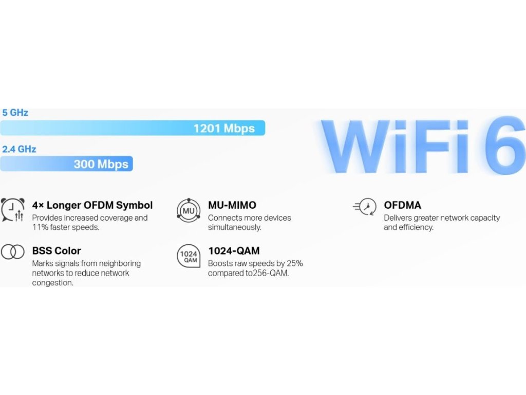 V balení naleznete jednotku s Dual-Band Wi-Fi AX1500 (300 + 1201 Mbps) MU-MIMO s integrovanými anténami a 3x porty 10/100/1000 Mbps. Jednotka podporuje MU-MIMO, 802.11r/k/v, OFDMA, Beamforming a pokryje plochu až 230 m2. Pokud potřebujete rozšířit pokrytí, stačí jednoduše dokoupit další jednotku. Jednotky Halo podporují kromě IPv4 i IPv6. Vhodným doplňkem do moderní domácnosti je také oddělená síť pro hosty nebo rodičovská kontrola.
