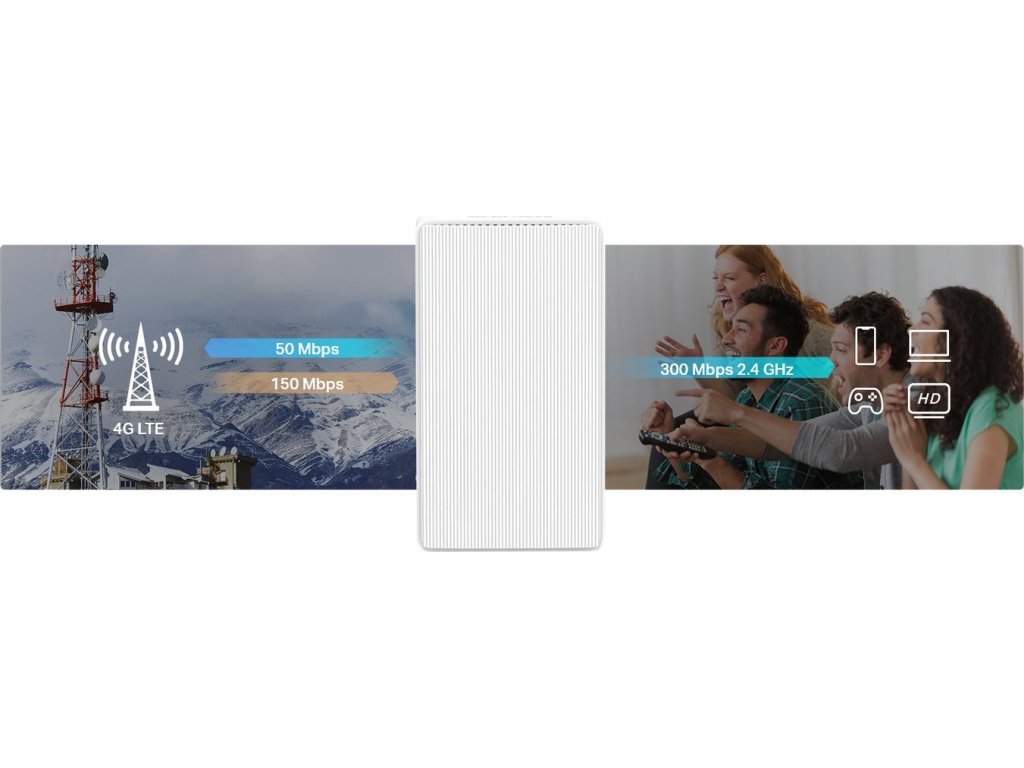 Využijte naplno přínosy bezdrátové sítě 4G LTE s routerem Mercusys, který dokáže dosáhnout rychlost stahování až 150 Mb/s po mobilní síti - vložte nano SIM a vše máte připravené. Router umožňuje sdílet vaši síť 4G LTE s více zařízeními pomocí 2.4 GHz Wi-Fi s rychlostí 300 Mbps pro dostatečnou rychlost při prohlížení a stahování dat, videostreamů či videohovorů. Zařízení umožňuje operační mód AP Router ale i failover v případě selhání konektivity přes kabelový WAN.