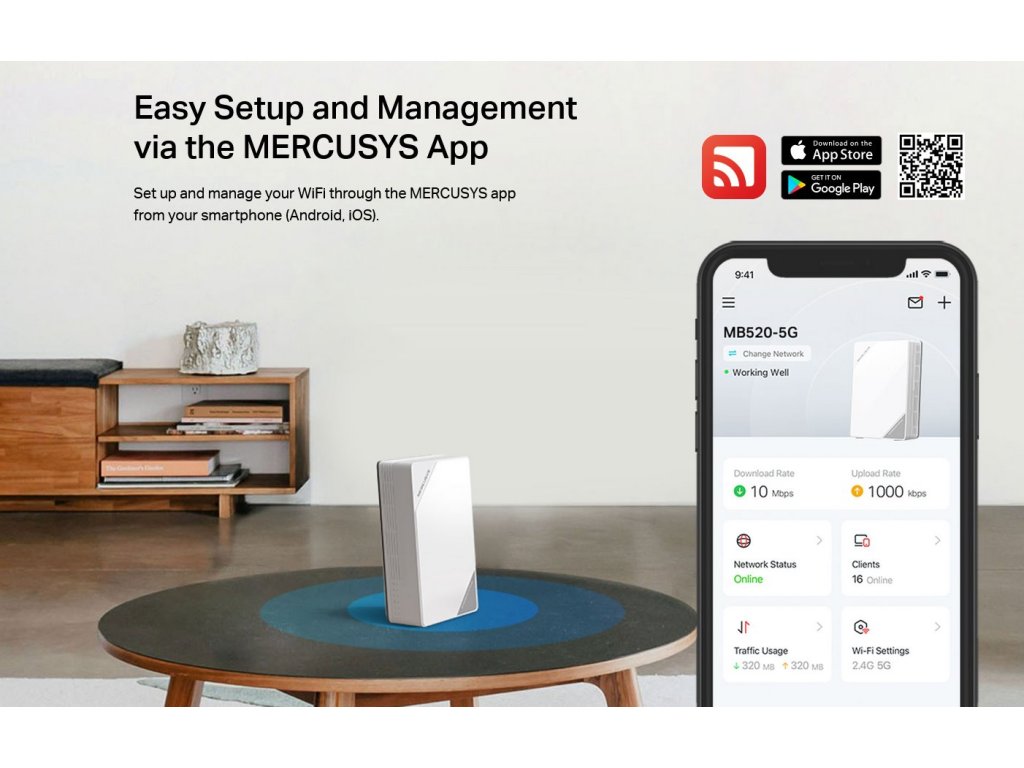 Management: | Webové rozhraní, TR-069, MERCUSYS aplikace |