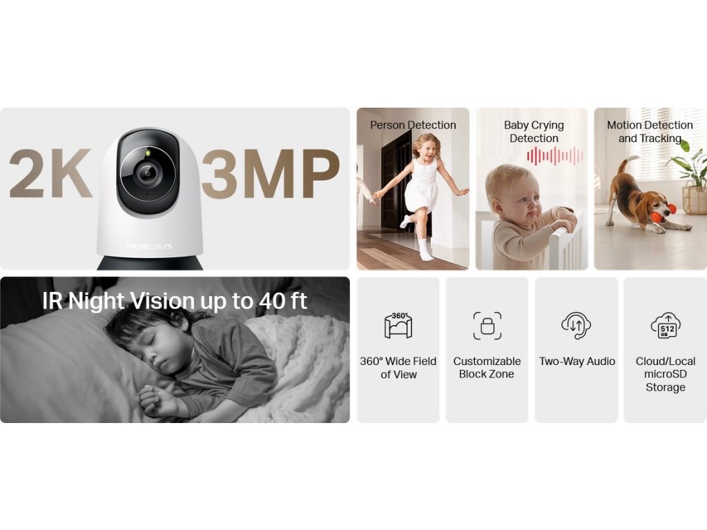 MERCUSYS MC210 Domácí bezpečnostní otočná Wi-Fi kamera, 3Mpx