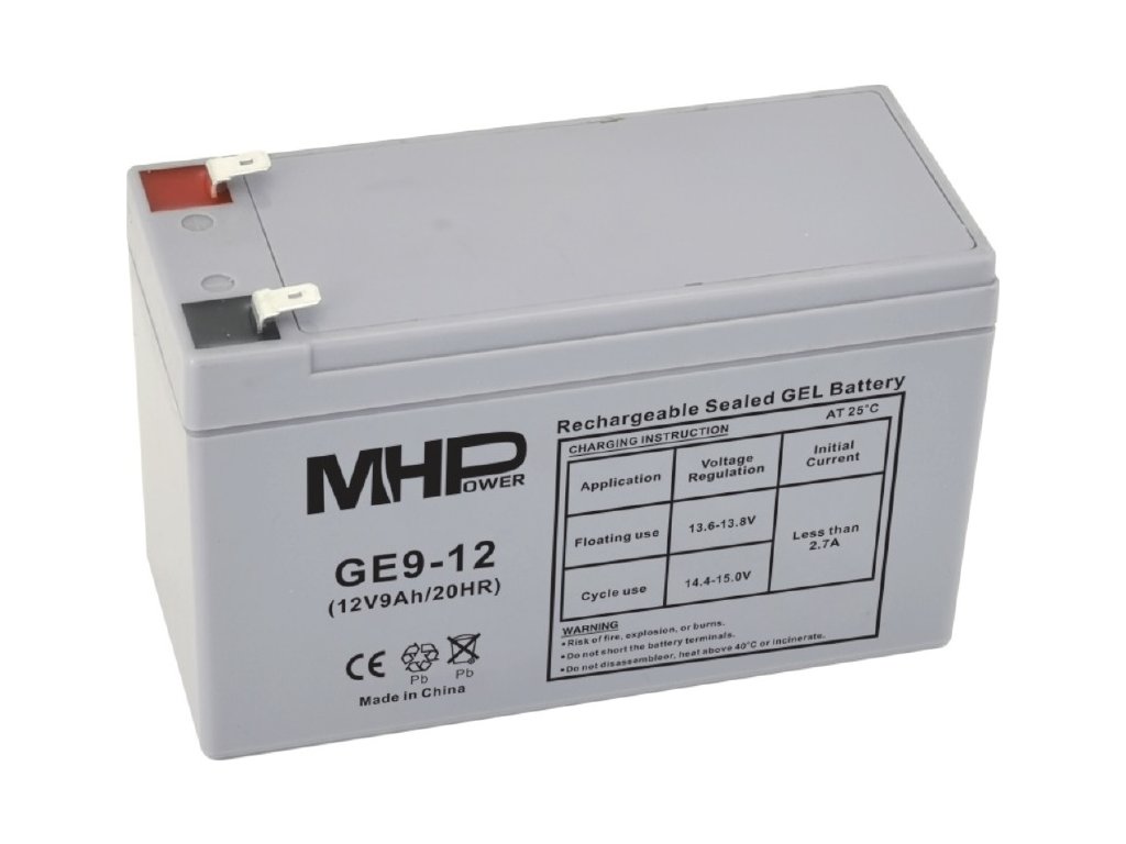 MHPower GE9-12 Gelový akumulátor 12V/9Ah, Faston F2 - 6,3mm, Deep Cycle