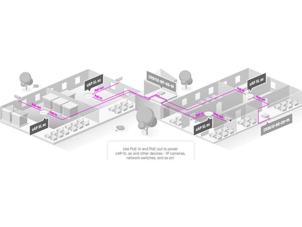 Jednotka podporuje frekvence 2,4 GHz i 5 GHz v rozsahu 360° a hodí se pro pokrytí hal či vestibulů. Interní anténa má zisk 6 a 5,5 dBi. Součástí jednotky je software RouterOS MikroTik s licencí L4. MikroTik cAP XL ac má integrovaný PoE+ splitter, lze jej tedy napájet přímo po FTP/UTP kabelu (PoE+ 802.3af/at). Druhý port lze využít jako pasivní výstup PoE (až 57 V).