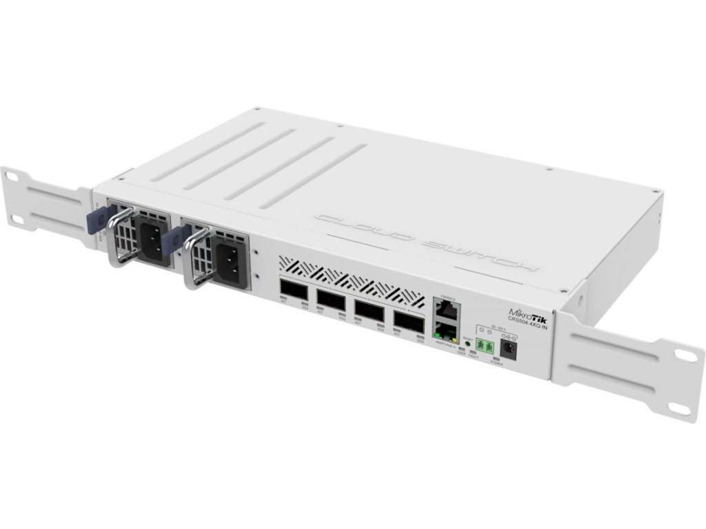 MikroTik Cloud Router Switch CRS504-4XQ-INKompaktní a výkonný Cloud Router Switch se čtyřmi 100G QSFP28 a jedním RJ-45 Ethernet portem + 1x RJ-45 konzole. Switch poskytuje 100Gigabitové optické spojení, a je tak ideálním řešením jak pro poskytovatele internetu, tak i pro firmy či datová centra.