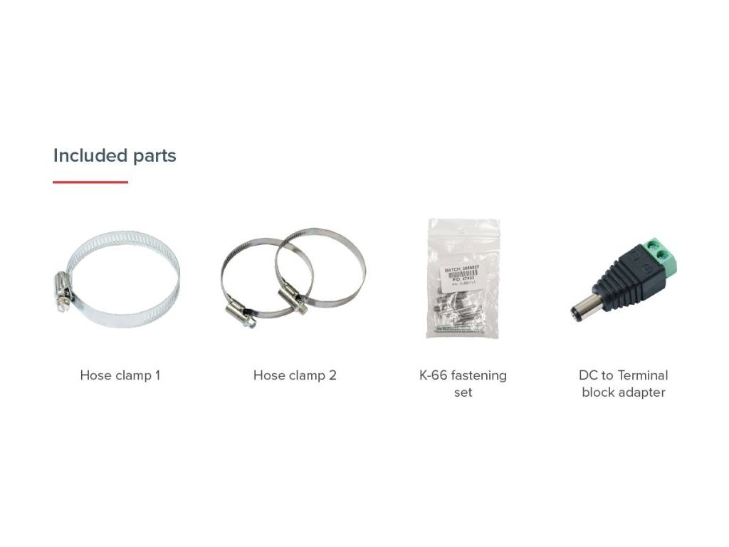 Součástí switche je MikroTik RouterOS/SwitchOS a plnohodnotná licence L5. V balení jsou pásky k uchycení na sloup. Napájecí adaptér není součástí balení.