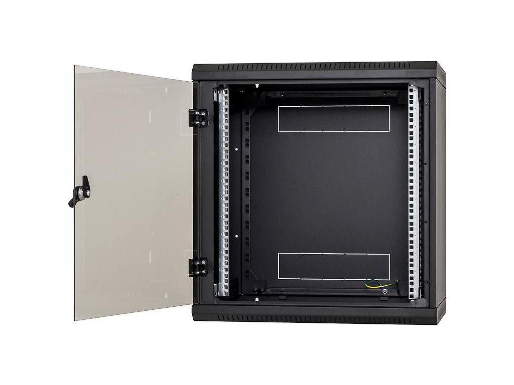 Nástěnný rack jednodílný 12U (š)600x(h)595 perforované dveře černý