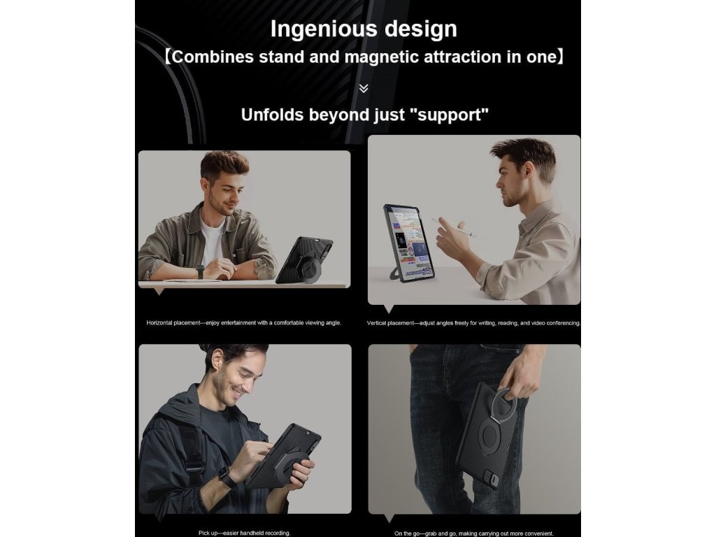 CamShield Pad zadní kryt je multifunkční kryt navržený pro tablety, který spojuje styl, ochranu a praktické funkce do jednoho.