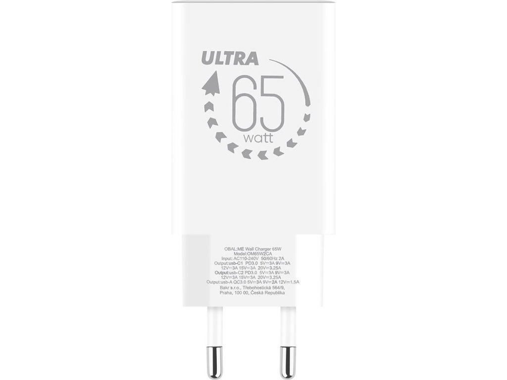 *OBAL:ME GaN cestovní nabíječka s podporou až 65 W je kompaktní a elegantní řešení pro rychlé nabíjení telefonu, tabletu, notebooku i sluchátek – a to klidně všech zařízení najednou.
