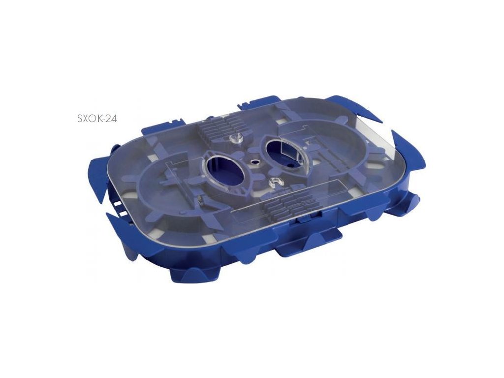 Optická kazeta disponuje unikátním systémem pro vedení vláken jak ve vnitřní části, tak i na vnější části po jejím obvodu. Součástí optické kazety jsou dva dvoupatrové hřebínky, které společně pojmou kapacitu až 24 ochran svárů. Uchycení a konstrukční řešení výklopných hřebínků umožňuje vedení vláken pod nimi samotnými. Součásti sady je průhledné plastové víko, které díky jednotlivým uchytům umožňuje pevné stohování kazet. Stohované kazety je možno vyklápět díky přídavným plastovým pantům. Vně optické kazety se nachází nástroj (plastový háček), který usnadňuje práci a manipulaci při ukládání optických vláken. Hřebínky v kazetě jsou kompatibilní pro ochrany svárů do průměru max. 2,2mm.