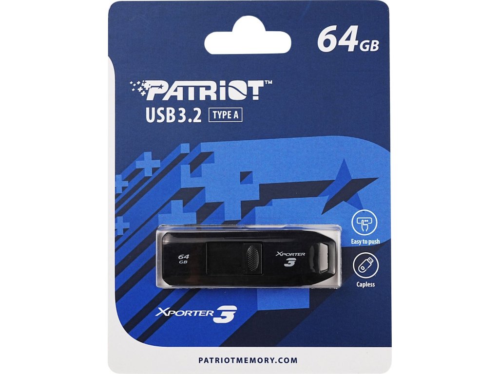 Flashdisk Patriot Xporter 3 je přenosné a lehké úložiště mimořádně kompaktních rozměrů, se kterým získáte jednoduchý přístup k datům, jejich přenosu a archivaci. Veškeré soubory, jako jsou videa, fotografie nebo hudba, pojme úložiště s kapacitou 64 GB. Díky tomu je vhodný pro náročnější každodenní použití. Flashdisk Patriot Xporter 3 se vejde do kapsy, tašky nebo batohu.