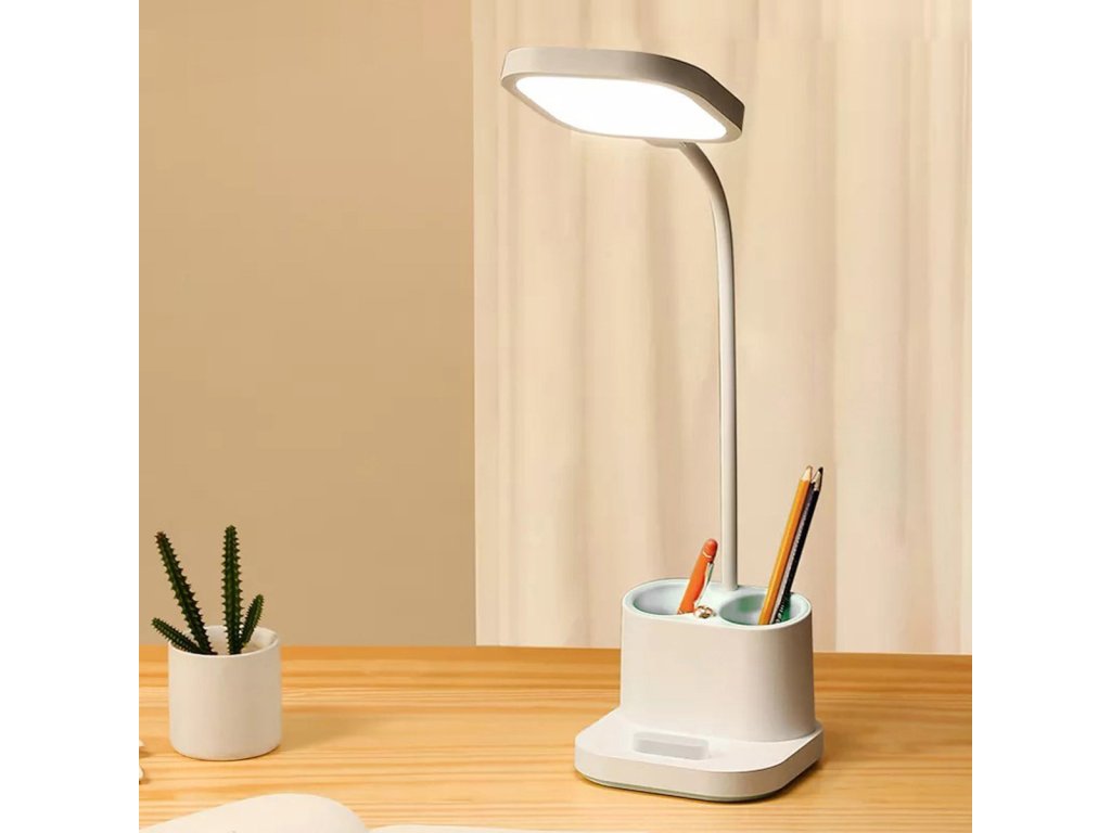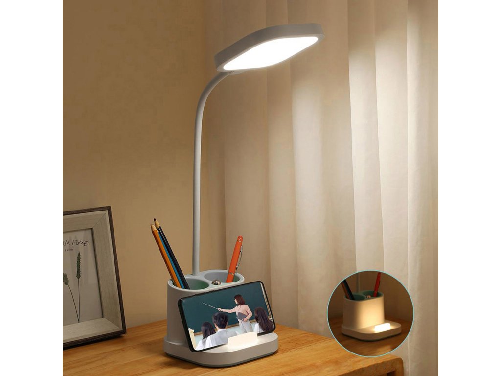 Flexibilní rameno umožňuje snadné nastavení směru svícení podle potřeby. Lampa navíc disponuje integrovaným nabíjecím výstupem, praktickým držákem na telefon a prostorem na pera.