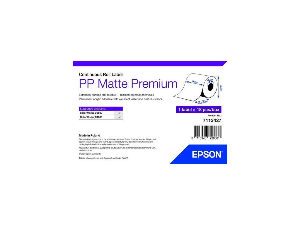 PP Matte Label Premium, Cont. Roll, 76mm x 29mm