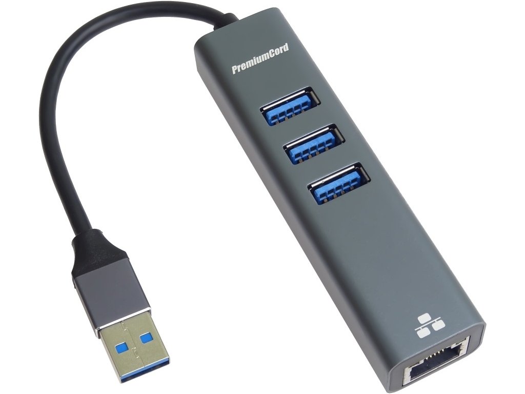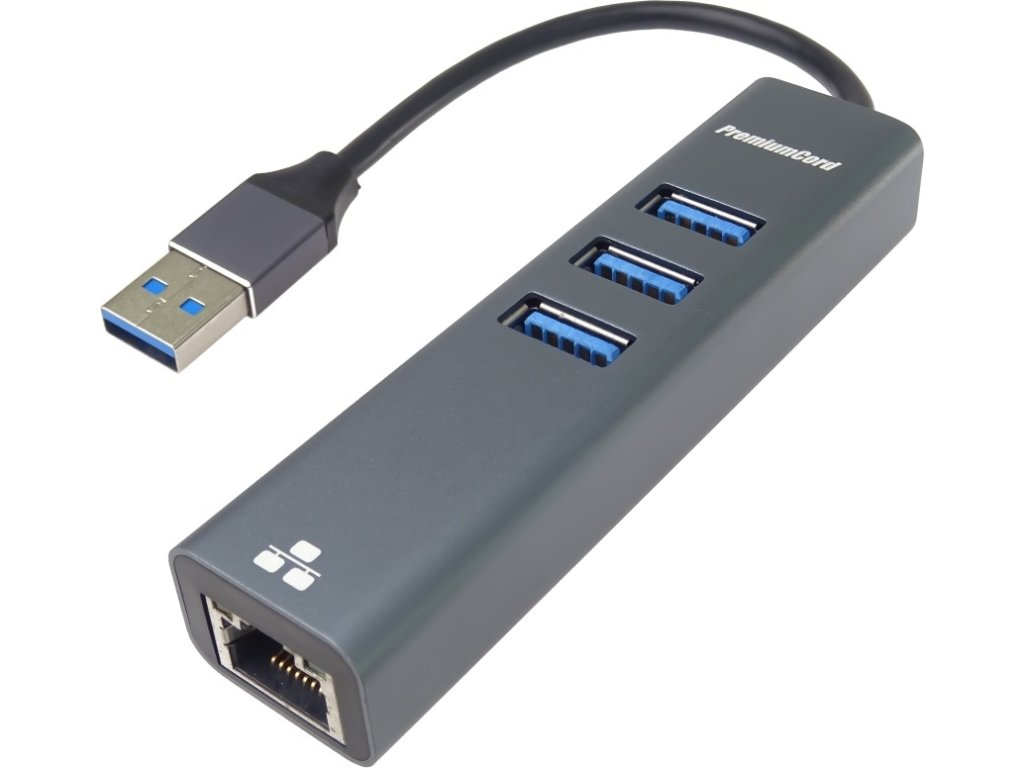 PremiumCord adaptér USB3.0 -> LAN RJ45 ETHERNET 10/100/1000 MBIT + 3x USB3.0 port