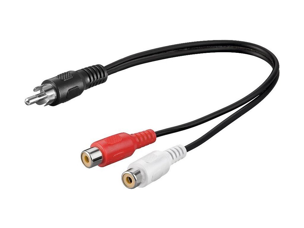 Kabel pro spojení dvou audio zařízení zvukovým signálem. Kabel 1x CINCH male - 2x CINCH female 20cm