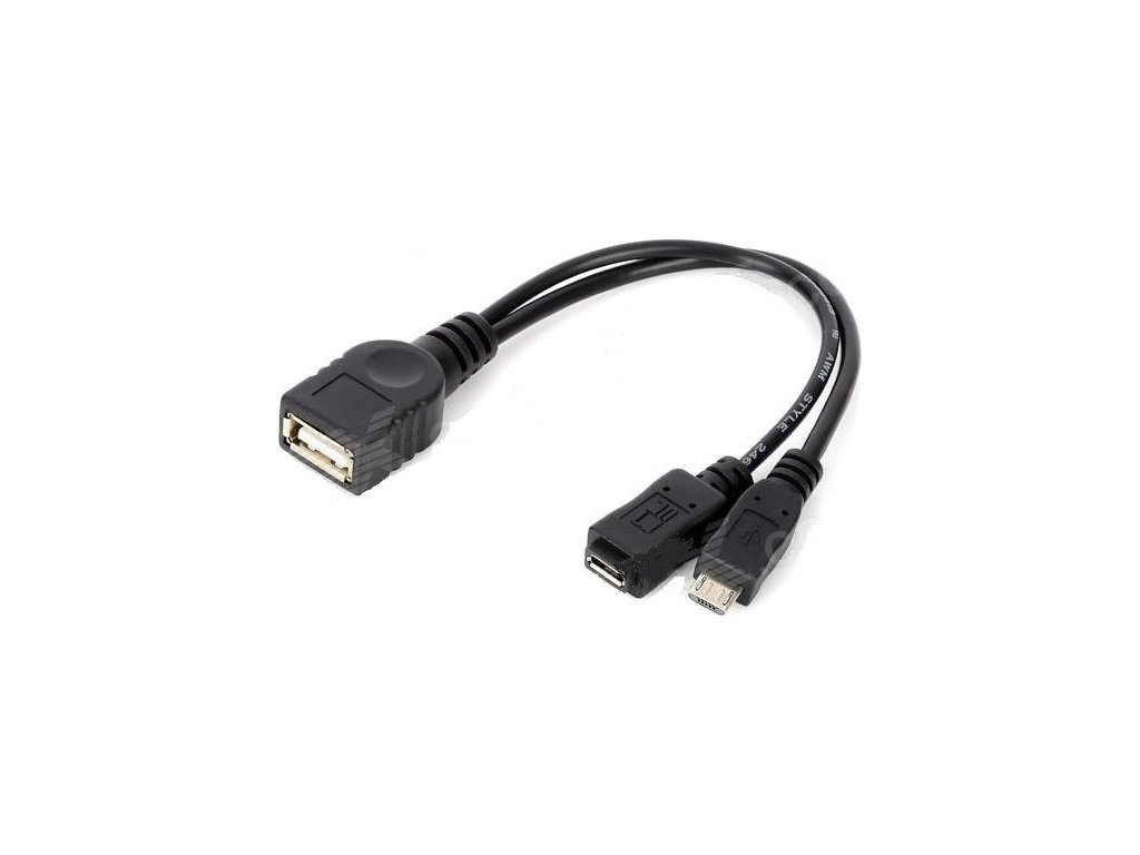 - Redukuje Micro USB konektor na samičku USB typ A (na tento konektor se připojuje flash disk, myš, klávesnice a jiné USB periferie).