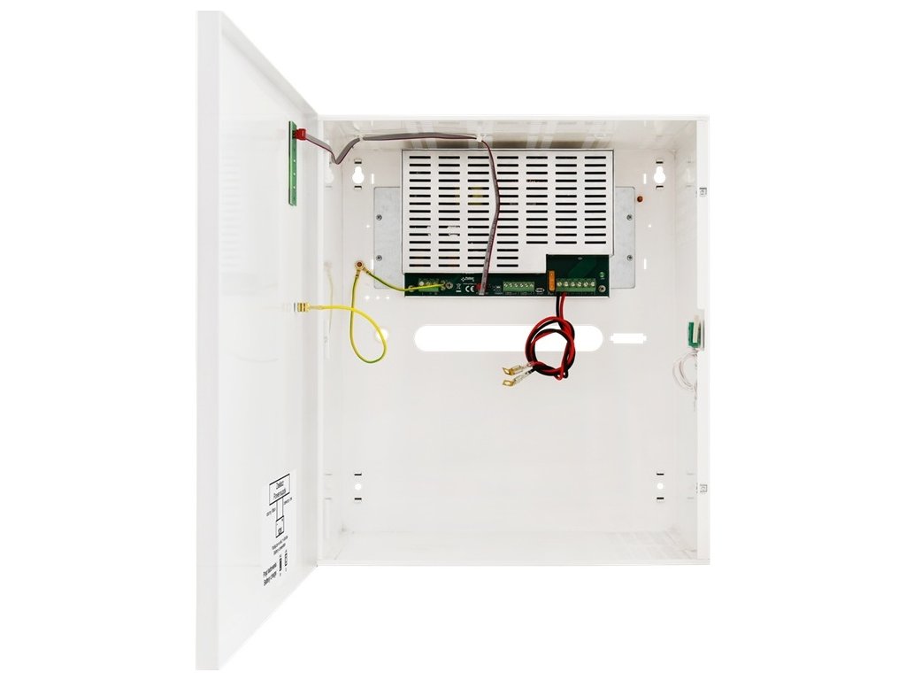Pulzný zálohovaný napájací zdroj, 13,8 V DC, výkon zdroja 10 A / 13,8 V, prúd nabíjania akumulátora 1 A / 4 A, priestor pre akumulátor TP 12-7 / 18 / 26 / 40, zhoda s normou EN50131 grade 2, optická LED signalizácia napájania 230 V / výstupu DC, ochrana proti skratu SCP, ochrana proti preťaženiu OLP, prepäťová ochrana OVP, ochrana akumulátora pred nadmerným vybitím UVP, sabotážny kontakt otvorenia skrinky, technické výstupy - porucha AC EPS, porucha akumulátora APS, , IP 20, rozmery skrinky 330 x 380 x 173 mm