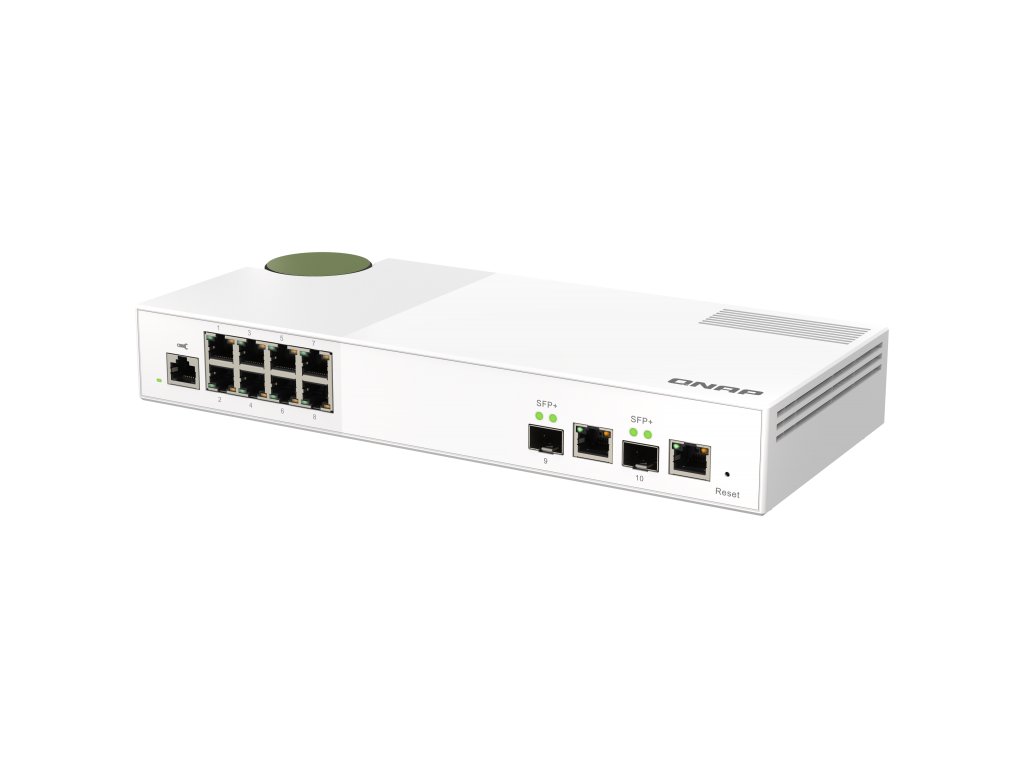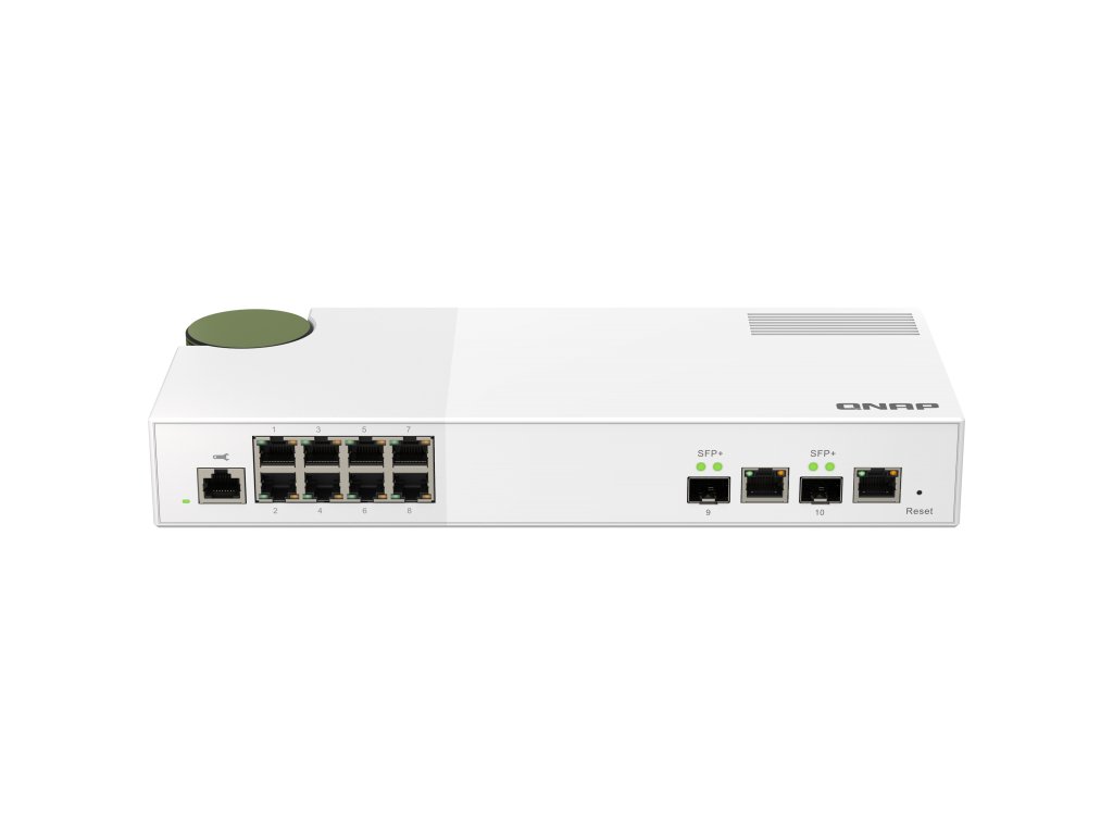 Zařízení QSW-M2108-2C je webově řízený přepínač úrovně 2 se dvěma kombinovanými porty 10GbE SFP+/RJ45 a osmi porty 2,5 Gigabit. Zařízení QSW-M2108-2C podporuje přepínání a správu sítě úrovně 2 (L2) prostřednictvím uživatelsky vstřícného webového rozhraní, nabízí flexibilní nasazení v hybridních vysokorychlostních síťových prostředích a poskytuje řešení pro správu sítě na základní úrovni, které zvládnou používat i ti, kdo nepatří mezi profesionály v oboru IT. Zařízení QSW-M2108-2C je kompatibilní s technologiemi 10GbE a NBASE-T a podporuje až pět rychlostí (10 G / 5 G / 2,5 G / 1 G / 100 M) pro zajištění vyšších přenosových rychlostí pomocí stávajících kabelů Cat 5e a 6a. Díky vysokému výkonu, uživatelsky přívětivé správě a stolnímu provedení umožňuje zařízení QSW-M2108-2C nákladově efektivní upgrade na síť 2,5GbE nebo 10GbE při optimalizaci šířky pásma a zajištění bezpečné údržby sítě.