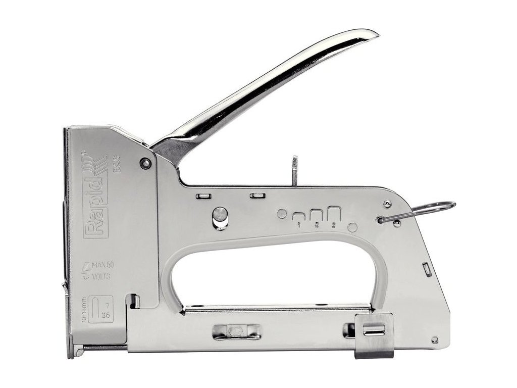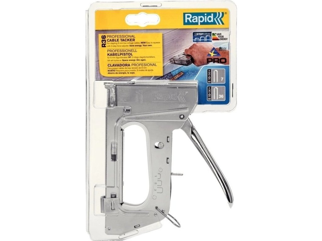 Profesionální sponkovačka RAPID R36 je ideální nástroj pro bezpečné upevnění nízkonapěťových kabelů do průměru 6 mm, jako jsou telefonní, anténní či síťové vodiče. Díky patentovanému mechanismu s nastavitelnou silou úderu ve třech krocích je její použití až o 40 % snazší. Celokovová konstrukce zajišťuje vysokou odolnost a dlouhou životnost. Kompatibilní se sponami typu 7 a 36 o délce 10–14 mm. Vyrobeno ve Švédsku s důrazem na kvalitu a preciznost.