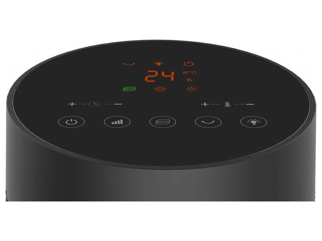 Jednoduchost obsluhy i jednoduchost čištění doplňuje digitální ovládací panel s dotykovými ovládacími senzory a barevným displejem. Stačí pouhý dotek prstem na příslušnou ikonu na displeji a topidlo okamžitě reaguje a plní vaše příkazy. Tento beztlačítkový ovládací prvek se vyznačuje zejména výrazně vyšší životností oproti klasickým ovládacím tlačítkům a navíc jej lze pohodlně udržovat a čistit díky absenci mechanických prvků a výstupků. Hladký celistvý povrch se proto velmi jednoduše udržuje a čistí – stačí pouze jemně setřít vlhkým hadříkem.