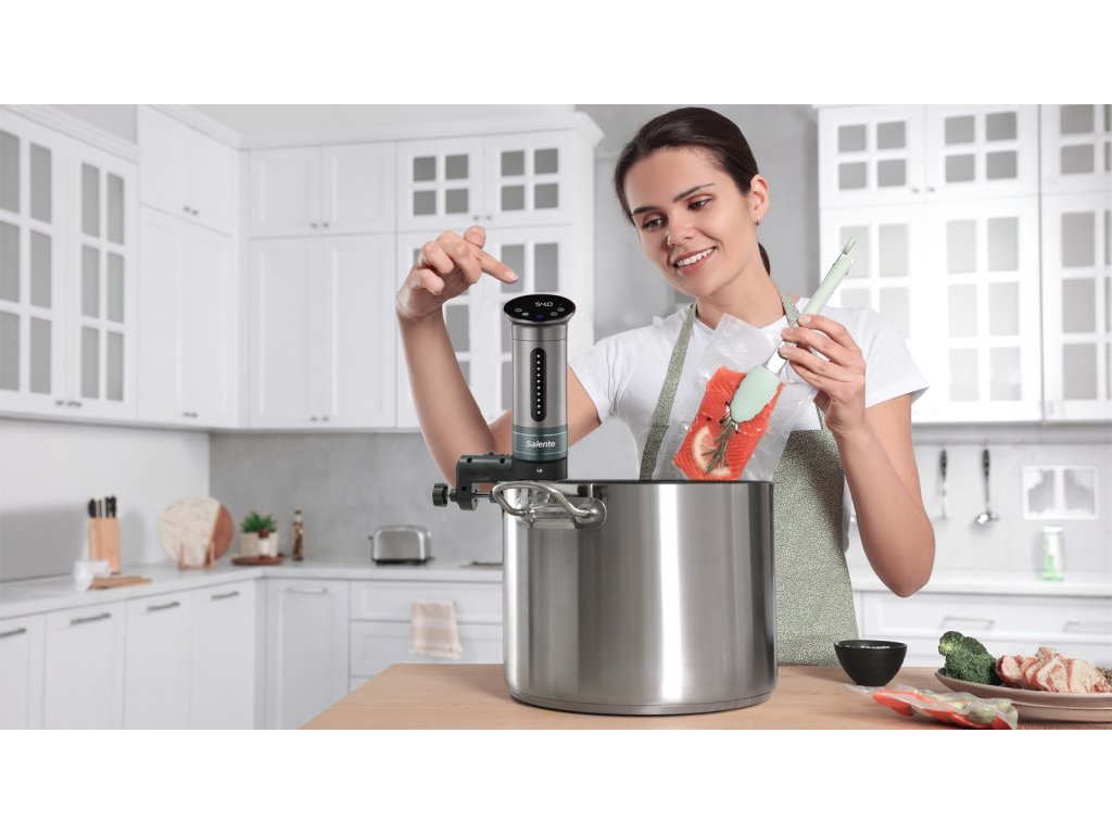 Sous Vide vařič Salente SuChef přináší do kuchyně jednu z nejmodernějších metod vaření profesionálních kuchařů z michelinských restaurací – pomalé vaření zavakuovaných ingrediencí ve vodní lázni při konstantní nízké teplotě. Díky této metodě ingredience naztrácejí svou hmotnost, zachovávají si šťavnatost, texturu, důležité vitamíny, minerály, živiny i nutriční hodnoty. Oproti klasickým metodám příprav si udrží i výraznější a lepší chuť, vůni i barvu. Velmi důležitým benefitem je skutečnost, že pokrm nelze ani připálit ani rozvařit a jedná se o zdravou přípravu bez tuků a olejů.