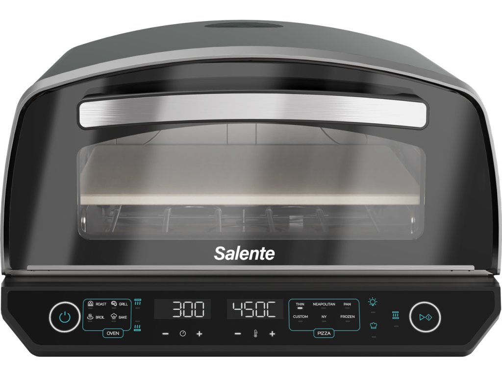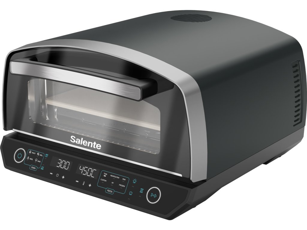 Pizza pec Salente Vulcano není jen mistr na pizzu – díky vestavěné funkci grilu ji využijete po celý rok na nespočet dalších způsobů. Nabízí režimy Broil, Roast, Bake a Grill, takže si snadno připravíte nejen dokonale propečenou pizzu, ale i šťavnaté maso, dozlatova zapečenou zeleninu, křupavé toasty nebo domácí pečivo.