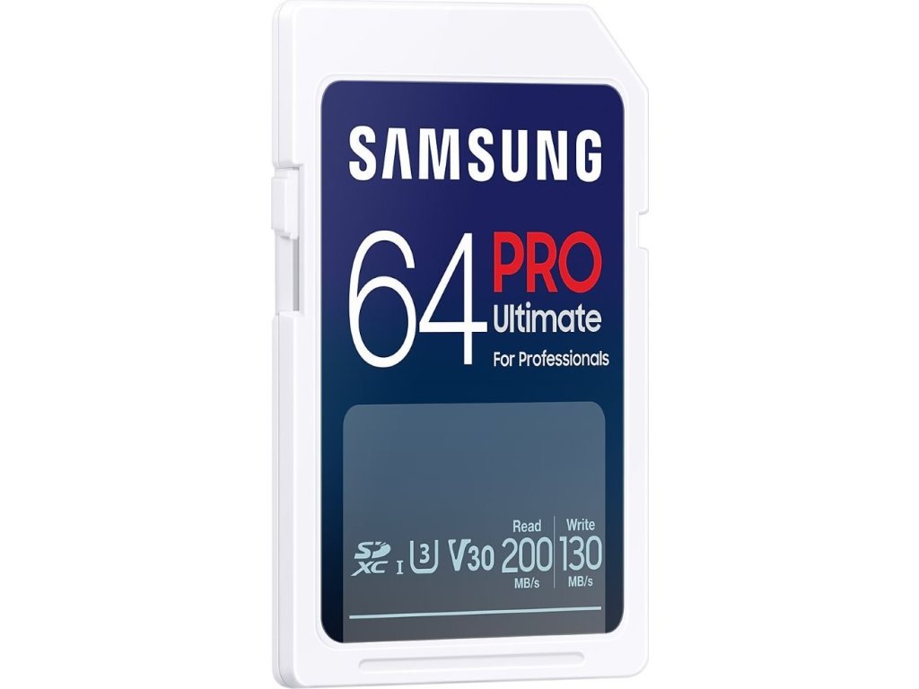 Paměťová karta Samsung PRO Ultimate si najde místo v zařízení fotografů, tvůrců obsahu, vlogerů a všech náročných uživatelů. Jedná se o špičkovou kartu, která přináší úložiště s kapacitou 64 GB a extra vysokou rychlost čtení a zápisu dat. Díky tomu je vhodná pro efektivní práci s velkými objemy dat, jako jsou sériově snímané fotografie nebo videa ve vysokém rozlišení.