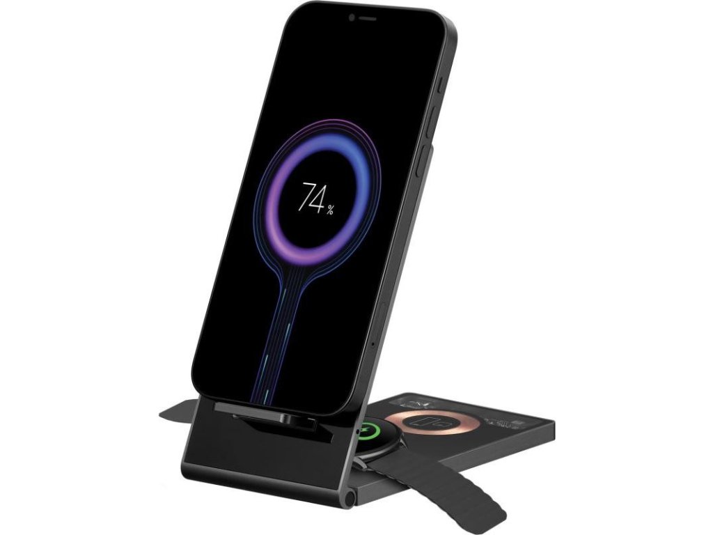 Bezdrátový nabíjecí stojan Sandberg 3-in-1 umožňuje bezdrátové současné nabíjení vašeho chytrého telefonu, Airpodů a chytrých hodinek. Nabíjecí podložka pro chytré telefony je magnetická a lze ji tedy připevnit k iPhonům s nabíječkou MagSafe. Na nabíjecí podložce lze nabíjet i další telefony kompatibilní s technologií Qi. Jednoduše je vložíte na malý výklopný držák. Celý stojan lze složit a proto je možné jej brát s sebou na cesty.