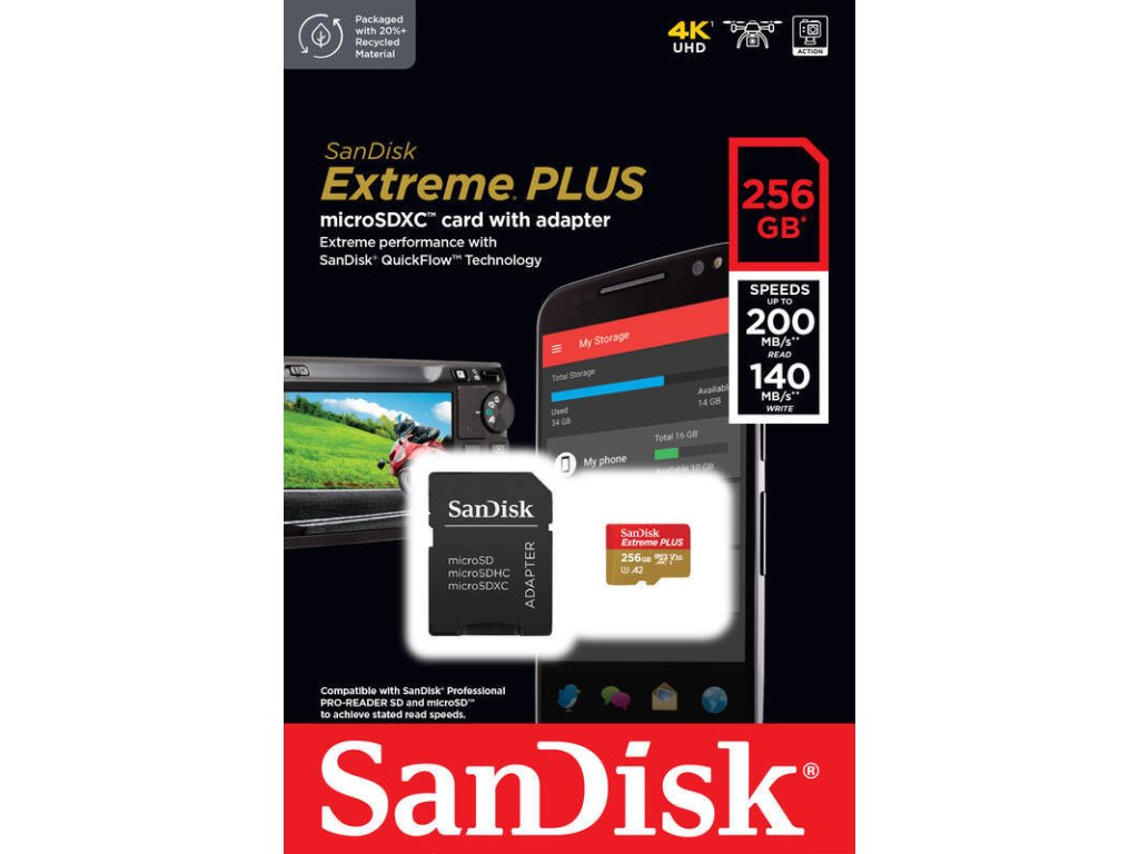 SanDisk Extreme PLUS/micro SDXC/256GB/UHS-I U3 / Class 10/+ Adaptér
