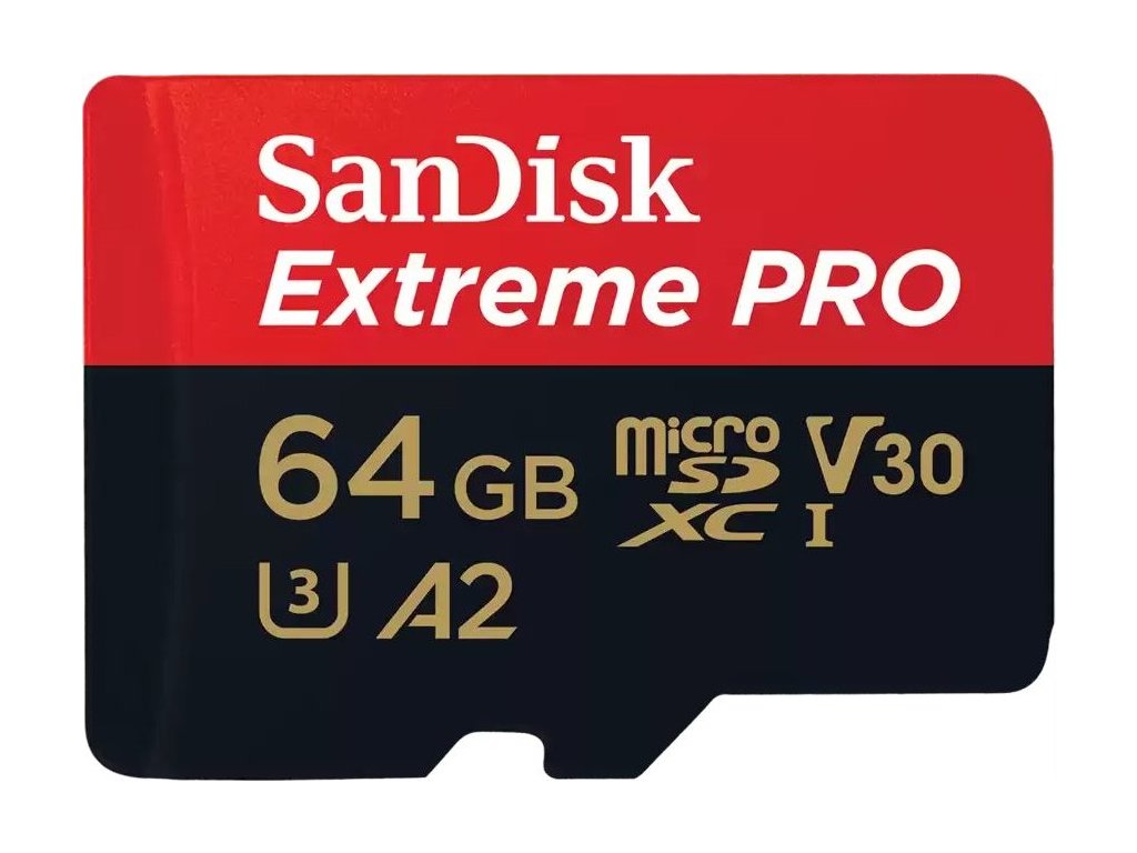 Paměťová karta formátu micro SDXC nabízí kapacitu 64 GB. Rychlost čtení je až 200 MB/s a rychlost zápisu až 90 MB/s. Součástí balení je SD adaptér a software pro obnovu dat RescuePRO s licencí na 2 roky, který umožňuje obnovit omylem smazané obrázky.