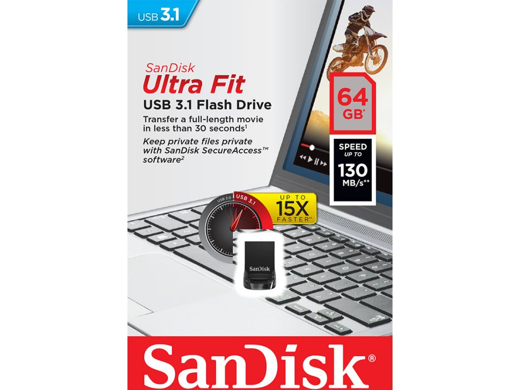 SanDisk Ultra Fit připojíte k PC, notebooku, televizi nebo herní konzoli a uložená data přehrajete na takřka jakékoli obrazové ploše. SanDisk SecureAccess představuje praktický nástroj pro správu soukromých dat, umožní vám vytvořit soukromou složku a následně ji zaheslovat na základě 128bitové šifrovací platformy. Mezi další přednosti patří například možnost stáhnout přídatný software RescuePRO Deluxe pro obnovu nechtěně smazaných dat.