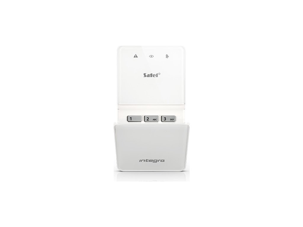 Klávesnica pre skupiny systému INTEGRA (biela), biele podsvietenie, ovládanie jednej skupiny v systéme, LED diódy indikujú stav skupiny, funkcia kontroly vstupu, relé na ovládanie el. zámku, vstup na kontrolu stavu dverí, rýchle zapnutie režimu stráženia, klávesy pre napadnutie / požiar / pomoc, stupeň zabezpečenia Grade 2 podľa EN 50131, max. odber prúdu 40 mA, rozmery 80 x 143 x 25 mm