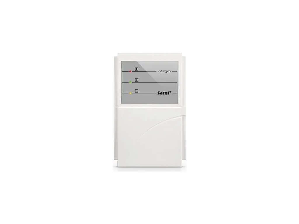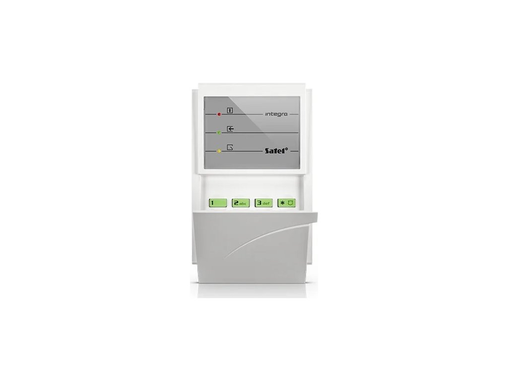 Kódový zámok pre systém INTEGRA, zelené podsvietenie, umožňuje kontrolu vstupu do miestnosti alebo oblasti s el. zámkom, vstup na kontrolu stavu dverí, relé na ovládanie el. zámku dverí, zatažiteľnosť výstupu 2 A / 24 V, dvojitá sabotážna ochrana pred otvorením a odtrhnutím od steny, LED pre signalizáciu stavu dverí, akustická signalizácia otvorenia dverí, klávesy pre napadnutie-požiar-pomoc, max. prúdový odber 66 mA, rozmery 80 x 127 x 24 mm