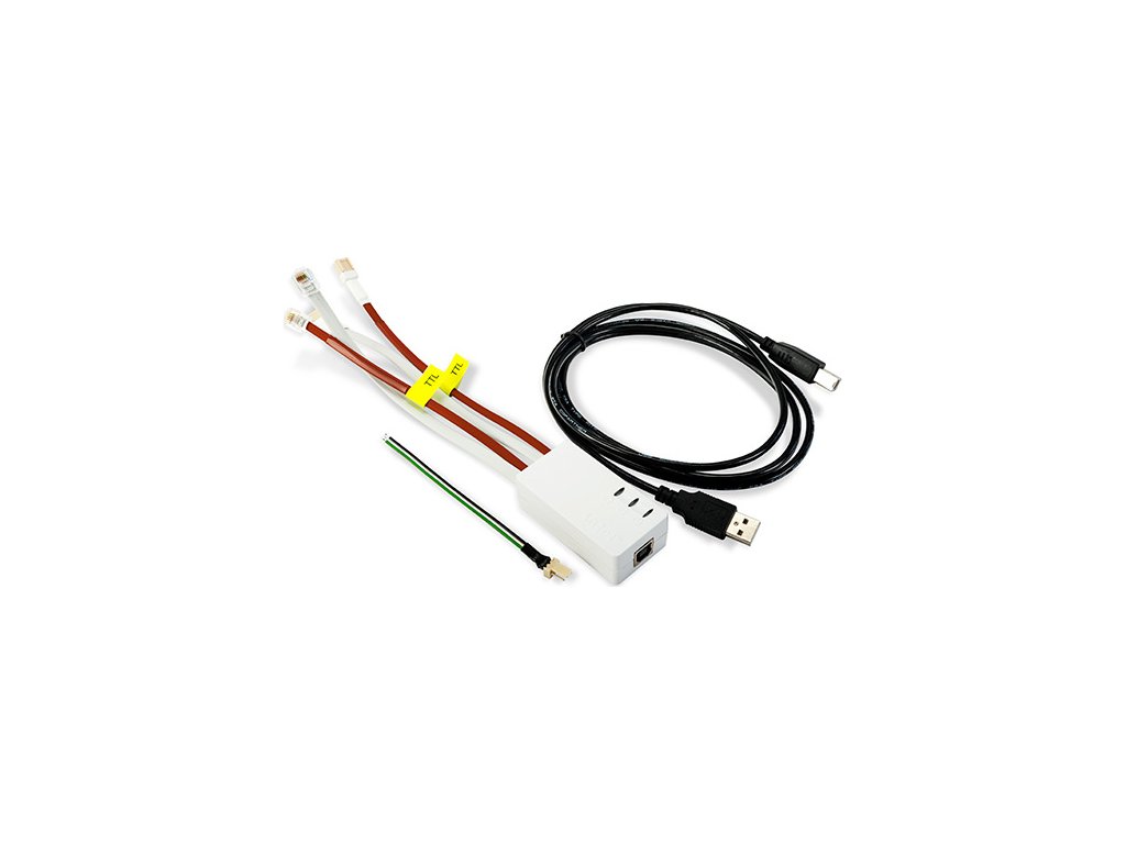 Programovací kábel s prevodníkom, RS-232 s konektorom PIN5 alebo RJ, RS-232 (TTL) s konektorom PIN3 alebo RJ, pre produkty Satel, súčasťou USB kábel typ B 1,8 m, rozmery 67 x 34 x 21 mm