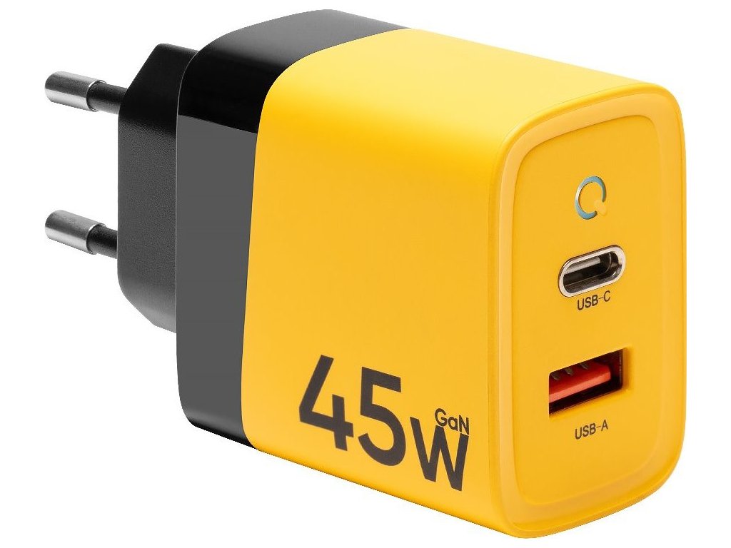 Celkový výkon 45W zaručí, že nabiješ MacBook Air, iPad nebo jiné zařízení s podporou tohoto výkonu. Výkon není sdílený – USB-C port zvládne plných 45W sám. Nabíječka má 2 porty: 1× USB-C a 1× USB-A.
