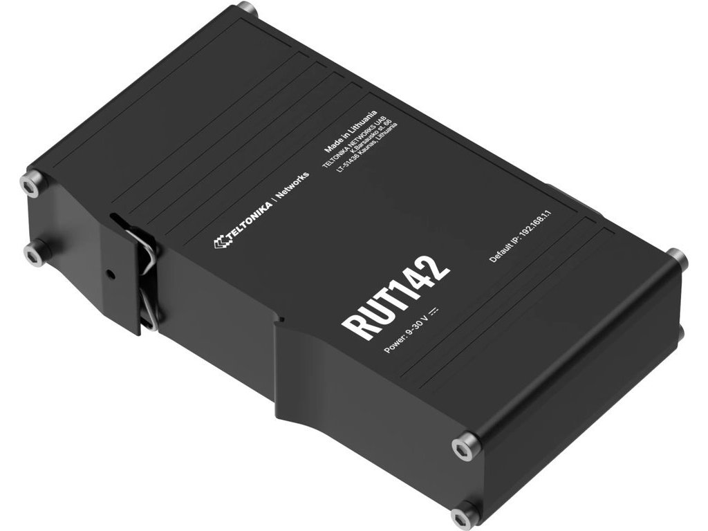 Teltonika RUT142Průmyslový ethernetový směrovač (router), který poskytuje spolehlivé připojení v náročných podmínkách průmyslového odvětví (automatizace, doprava, výroba atd.). Pracuje na operačním systému rutOS.